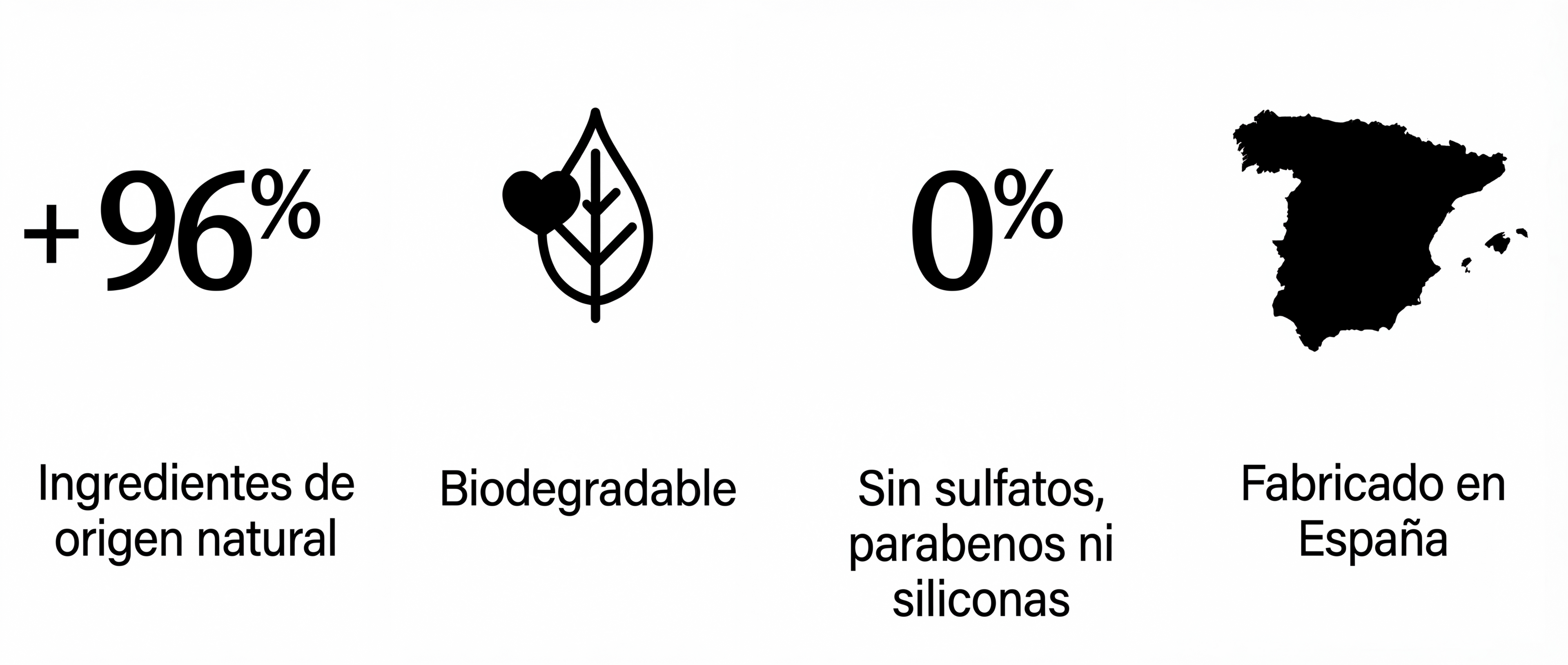 Ten en cuenta que al usar ingredientes naturales, la formación de espuma es mínima. El producto limpia igual, pero sin llevar tensioactivos químicos en los ingredientes.